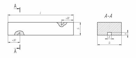 Geometrical dimensions of blocks and notches formed therein are determined by the regulatory and technical documentation for carrying out the testing.